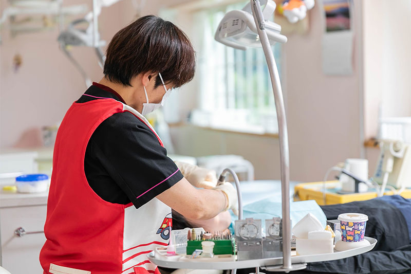 当院では、患者様が実際に使用している歯ブラシを用いて、わかりやすく正しいブラッシング方法をレクチャー。また、毛の硬さ、大きさ、形状など、一人ひとりに合った歯ブラシ選びのサポートも行っています。